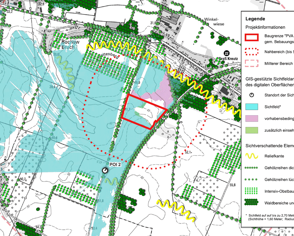 Wir analysieren und lokalisieren u.a. die Sichtbarkeit geplanter Anlagen (bspw. PV-Freiflächen-, Windenergie- oder Industrieanlagen) im Landschaftsraum. Die Ermittlung der Eingriffs- und Kompensationswirkung (gem. "Märkisches Modell" Brandenburg 2025) zählt ebenfalls zu unserem Leistungsbild. Die Ergebnisse können sowohl als Planungsunterlagen im PDF-Format, als auch webbasiert (GeoMap) bereitgestellt werden.So erhalten Sie eine fundierte Grundlage für Planungsentscheidungen, Umweltprüfungen oder Beteiligungsverfahren.